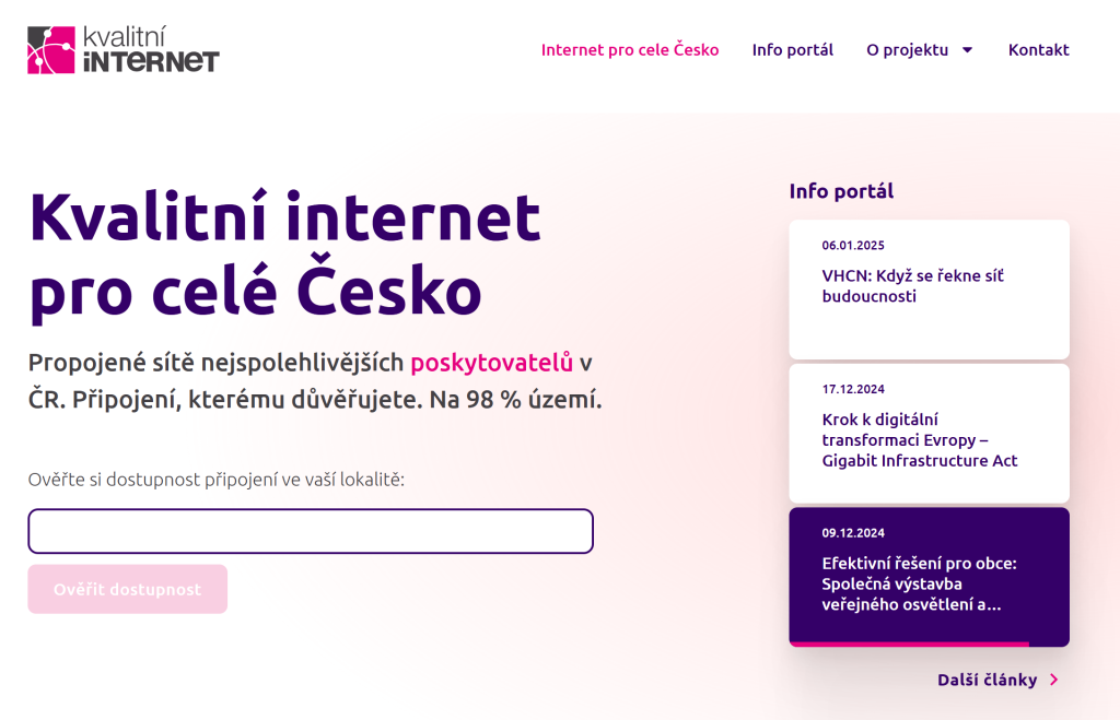Představujeme vám projekt Kvalitní internet, který přináší inovativní řešení pro prezentaci internetového připojení v České republice. Tento projekt, provozovaný nově vznikajícím pobočným spolkem, má dva hlavní účely - zobrazování pokrytí adresních míst s dostupnými tarify a provoz informačního portálu s měsíční návštěvností v desítkách tisíc uživatelů. Portál nabízí poskytovatelům internetu jedinečnou příležitost prezentovat své pokrytí…